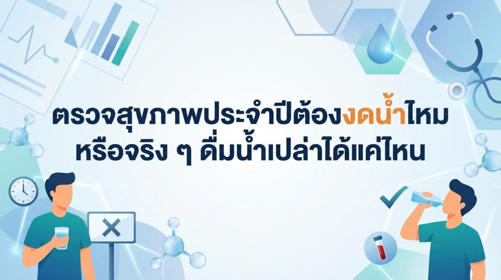 การเตรียมตัวก่อนเข้ารับการ ตรวจสุขภาพประจำปี ถือเป็นสิ่งสำคัญที่ไม่ควรมองข้าม โดยเฉพาะเรื่องของอาหารและเครื่องดื่ม หนึ่งในคำถามยอดฮิตที่สร้างความสับสนให้กับหลายคนคือ “ตรวจสุขภาพประจำปีต้องงดน้ำไหม หรือจริง ๆ แล้วเราสามารถดื่มน้ำเปล่าก่อนตรวจเลือดได้แค่ไหนกันแน่” ความเข้าใจผิดเกี่ยวกับเรื่องนี้อาจส่งผลต่อความแม่นยำของผลตรวจได้ บทความนี้จะมาไขทุกข้อสงสัย เพื่อให้คุณเตรียมตัวได้อย่างถูกต้อง มั่นใจ และได้รับผลตรวจที่น่าเชื่อถือที่สุด