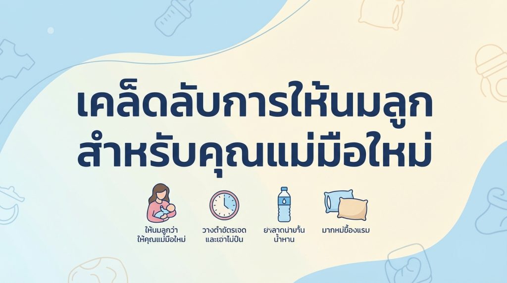 - สร้างบรรยากาศ: เตรียมมุมสงบ สบายๆ สำหรับการให้นม พร้อมหมอนรองให้นมและน้ำดื่มสำหรับคุณแม่