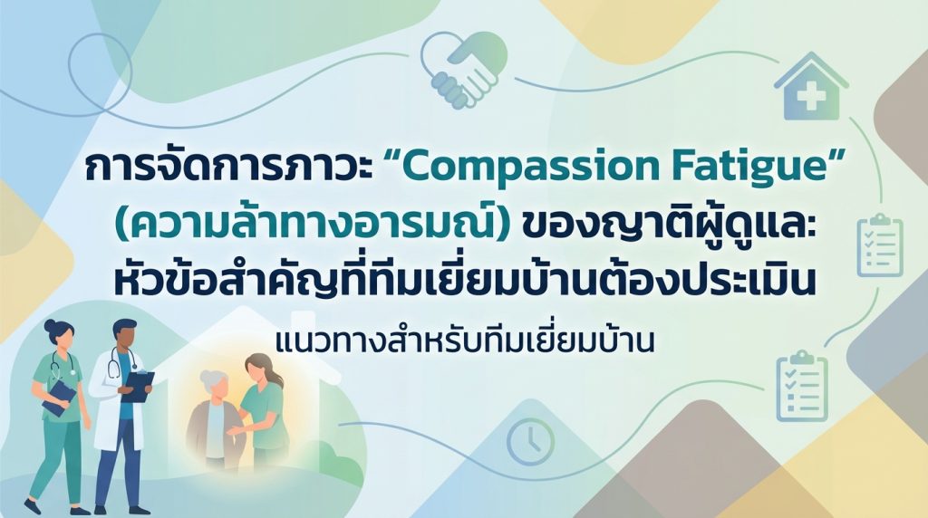 ทีมเยี่ยมบ้านควรประเมินภาวะ Compassion Fatigue ในญาติผู้ดูแล เพื่อป้องกันความล้าทางอารมณ์และส่งเสริมสุขภาพจิตที่ดี เรียนรู้สัญญาณและแนวทางช่วยเหลือ.