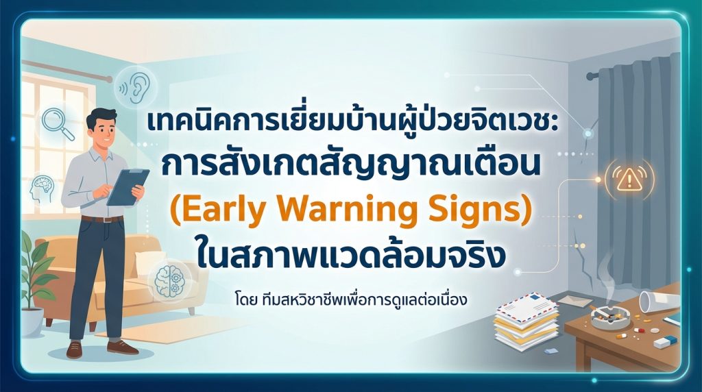 เรียนรู้เทคนิคการเยี่ยมบ้านผู้ป่วยจิตเวชเพื่อสังเกตสัญญาณเตือน (Early Warning Signs) ในสภาพแวดล้อมจริง ค้นพบวิธีการดูแลและป้องกันภาวะวิกฤตอย่างมืออาชีพ