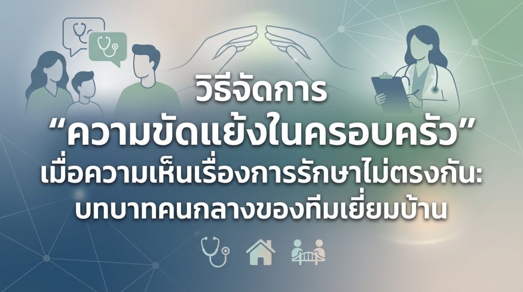 พบกับวิธีจัดการความขัดแย้งในครอบครัวเมื่อความเห็นเรื่องการรักษาไม่ตรงกัน ด้วยบทบาทคนกลางของทีมเยี่ยมบ้านมืออาชีพ เพื่อหาทางออกที่ดีที่สุดสำหรับผู้ป่วยและทุกคน