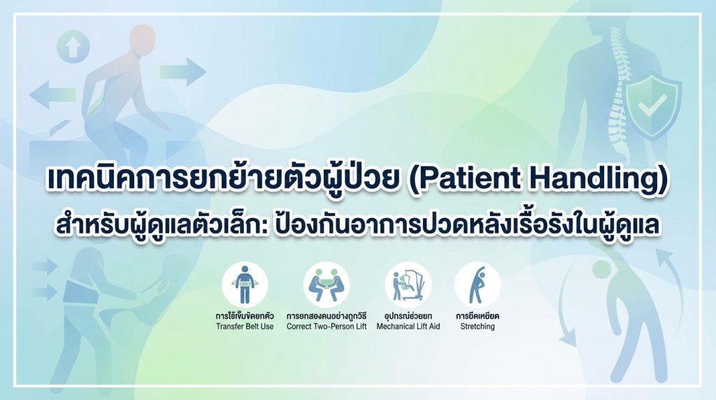 ผู้ดูแลตัวเล็กต้องยกย้ายผู้ป่วยใช่ไหม? เรียนรู้เทคนิค Patient Handling ที่ถูกต้อง เพื่อป้องกันอาการปวดหลังเรื้อรังและดูแลผู้ป่วยอย่างปลอดภัย บทความนี้มีคำตอบ!