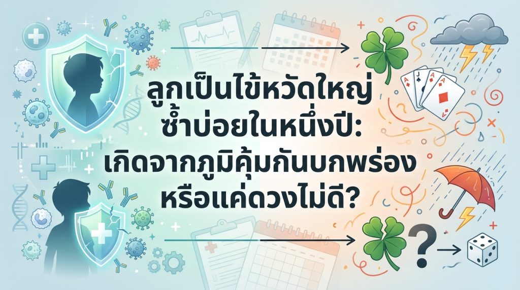 ในฐานะพ่อแม่ เรามักจะเฝ้าระวังสุขภาพของลูกน้อยอยู่เสมอ และคงไม่มีอะไรน่ากังวลไปกว่าการเห็นลูกป่วยบ่อยครั้ง โดยเฉพาะอย่างยิ่ง ลูกเป็นไข้หวัดใหญ่ซ้ำบ่อย ภายในหนึ่งปี สิ่งนี้อาจทำให้คุณพ่อคุณแม่เกิดคำถามมากมายว่า “ลูกเป็นอะไรกันแน่?” “นี่คือสัญญาณของภูมิคุ้มกันบกพร่องในเด็กหรือไม่” หรือเป็นเพียงแค่ “โชคร้าย” ที่ลูกต้องเผชิญกับเชื้อโรคบ่อยกว่าปกติ? บทความนี้จะพาทุกท่านไปไขข้อสงสัยและทำความเข้าใจถึงสาเหตุที่แท้จริง พร้อมแนวทางการดูแลและป้องกันเพื่อให้ลูกน้อยมีสุขภาพที่แข็งแรง