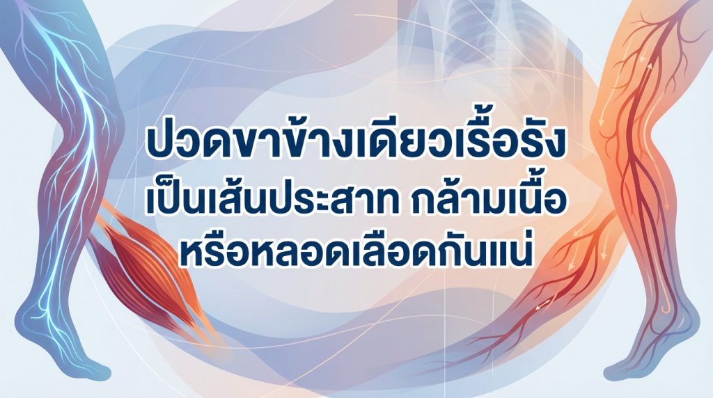 อาการ ปวดขาข้างเดียวเรื้อรัง เป็นปัญหาที่หลายคนต้องเผชิญ สร้างความรำคาญและส่งผลกระทบต่อคุณภาพชีวิตประจำวัน ไม่ว่าจะเป็นการเดิน การยืน หรือแม้แต่การนอนหลับ แต่คุณเคยสงสัยหรือไม่ว่าอาการปวดที่คุณกำลังเป็นอยู่นั้น มีต้นตอมาจากอะไรกันแน่? เป็นเพราะ เส้นประสาท กล้ามเนื้อ หรือ หลอดเลือด กันแน่? การทำความเข้าใจสาเหตุที่แท้จริงจะช่วยให้คุณสามารถดูแลและรักษาได้อย่างตรงจุด บทความนี้จะพาทุกคนไปเจาะลึกถึงลักษณะอาการปวดจากสาเหตุต่างๆ พร้อมแนวทางเบื้องต้นในการสังเกตอาการด้วยตนเอง