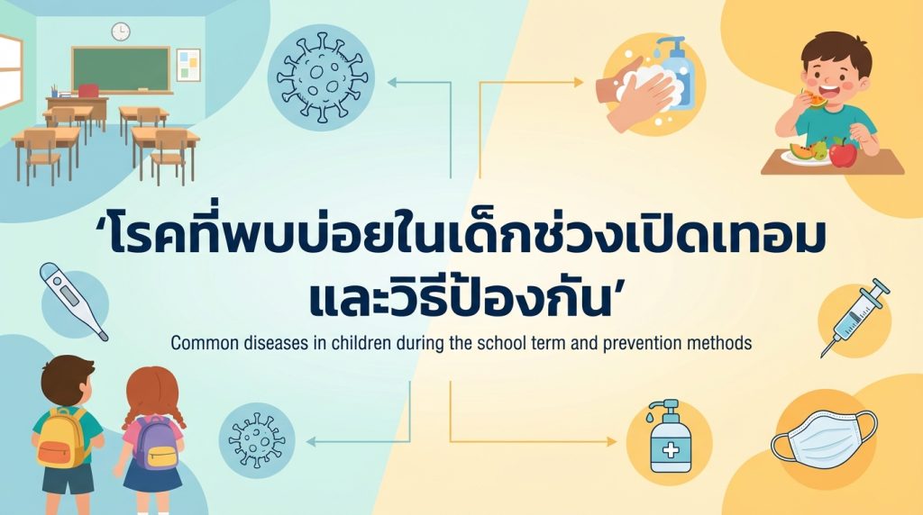 เมื่อเสียงกริ่งโรงเรียนดังขึ้นอีกครั้ง พร้อมกับการกลับมาของรอยยิ้มและเสียงหัวเราะของลูกน้อย นั่นหมายถึงการเริ่มต้นของช่วงเวลาแห่งการเรียนรู้และประสบการณ์ใหม่ๆ แต่ในขณะเดียวกัน การรวมกลุ่มกันของเด็กๆ จำนวนมาก ก็มักนำมาซึ่งความกังวลใจสำหรับผู้ปกครอง นั่นคือ โรคที่พบบ่อยในเด็กช่วงเปิดเทอม