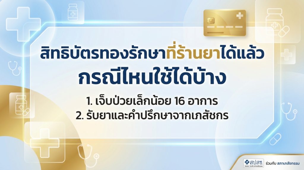 Meta Description: สิทธิบัตรทองรักษาที่ร้านยาได้แล้ว! ค้นพบ 16 อาการเจ็บป่วยเล็กน้อยที่คุณสามารถรับยาและคำปรึกษาจากเภสัชกรได้ฟรี สะดวก ใกล้บ้าน ไม่ต้องไปโรงพยาบาล