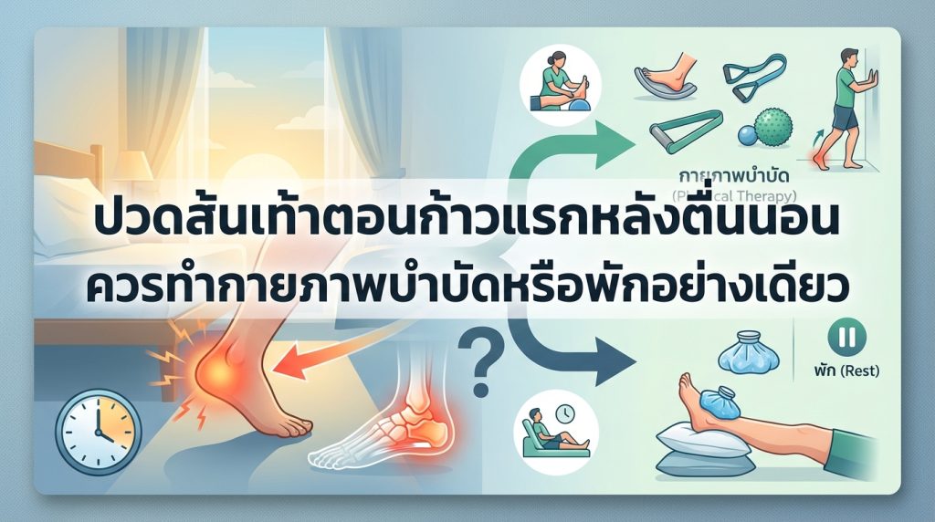 อาการปวดส้นเท้าตอนก้าวแรกหลังตื่นนอนเป็นปัญหาสุขภาพที่พบได้บ่อยและสร้างความรำคาญให้กับใครหลายคน ความรู้สึกเจ็บจี๊ดหรือปวดตื้อๆ ที่ส้นเท้าทันทีที่ก้าวลงจากเตียงหลังจากพักผ่อนมาทั้งคืนนั้น สามารถส่งผลกระทบต่อการเริ่มต้นวันใหม่และคุณภาพชีวิตประจำวันของคุณได้ หลายคนอาจสงสัยว่าเมื่อมีอาการเช่นนี้ ควรจะเลือกพักอาการปวดส้นเท้าอย่างเดียว หรือควรเข้ารับการกายภาพบำบัดส้นเท้าเพื่อรักษาอาการให้หายขาดกันแน่ บทความนี้จะเจาะลึกถึงสาเหตุ แนวทางการรักษา และคำแนะนำจากผู้เชี่ยวชาญ เพื่อช่วยให้คุณเข้าใจและตัดสินใจเลือกทางเลือกที่เหมาะสมที่สุดสำหรับอาการของคุณ