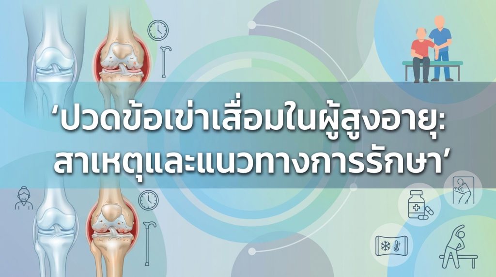 ปวดข้อเข่าเสื่อมในผู้สูงอายุ เป็นภาวะที่หลีกเลี่ยงได้ยาก แต่สามารถจัดการและชะลอความรุนแรงได้ด้วยความเข้าใจและการดูแลที่ถูกต้อง การรู้เท่าทัน สาเหตุของข้อเข่าเสื่อม และ สัญญาณเตือน จะช่วยให้ผู้สูงอายุได้รับการรักษาที่เหมาะสมและทันท่วงที ไม่ว่าจะเป็นการปรับพฤติกรรม การทำกายภาพบำบัด หรือแม้แต่การผ่าตัดเปลี่ยนข้อเข่าเทียม ทุกแนวทางล้วนมีเป้าหมายเพื่อช่วยให้ผู้สูงอายุกลับมาใช้ชีวิตได้อย่างมีความสุขและปราศจากความเจ็บปวด หากคุณหรือคนในครอบครัวกำลังเผชิญปัญหา ข้อเข่าเสื่อม อย่าลังเลที่จะ ปรึกษาแพทย์ผู้เชี่ยวชาญ เพื่อวางแผนการรักษาที่เหมาะสมที่สุดสำหรับคุณ