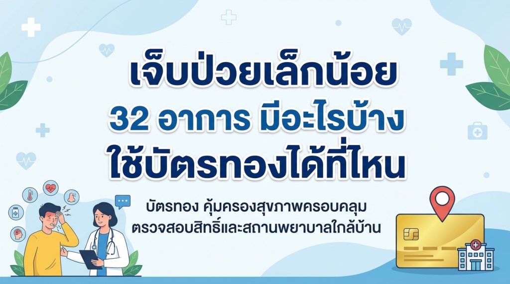 ในยุคที่การเข้าถึงบริการทางการแพทย์เป็นเรื่องสำคัญ “บัตรทอง” หรือ หลักประกันสุขภาพถ้วนหน้า ได้เข้ามามีบทบาทอย่างมากในการดูแลสุขภาพของคนไทย แต่หลายคนอาจยังไม่ทราบว่า สิทธิบัตรทอง ของเรานั้นครอบคลุมการรักษาอาการเจ็บป่วยเล็กน้อยถึง 32 กลุ่มอาการ ซึ่งสามารถเข้ารับบริการได้ที่ “หน่วยบริการปฐมภูมิ” ใกล้บ้าน โดยไม่ต้องเดินทางไปรอคิวที่โรงพยาบาลใหญ่เสมอไป บทความนี้จะพาทุกคนไปทำความรู้จักกับ 32 อาการเจ็บป่วยเล็กน้อย เหล่านี้ พร้อมแนะนำวิธีการใช้ บัตรทอง เพื่อรับบริการที่สะดวกและรวดเร็ว