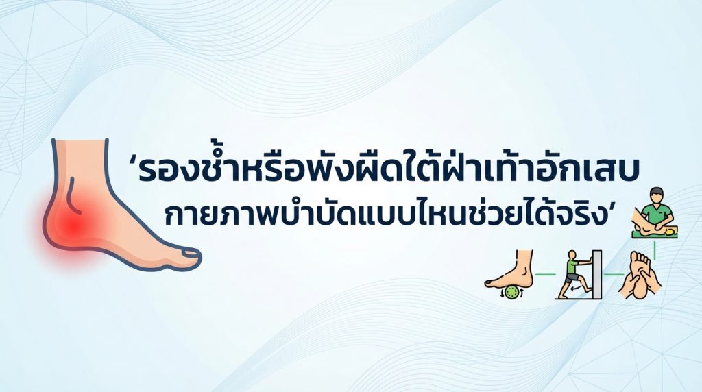 อาการปวดส้นเท้าเรื้อรังยามก้าวแรกหลังตื่นนอน หรือเมื่อยืนเดินนานๆ อาจเป็นสัญญาณเตือนว่าคุณกำลังเผชิญกับภาวะ รองช้ำ หรือ พังผืดใต้ฝ่าเท้าอักเสบ (Plantar Fasciitis) หนึ่งในปัญหาเท้าที่พบบ่อยและสร้างความทุกข์ทรมานไม่น้อย หากปล่อยทิ้งไว้อาจส่งผลกระทบต่อคุณภาพชีวิตและการทำกิจกรรมประจำวันได้ ในบทความนี้ เราจะมาเจาะลึกว่าภาวะนี้คืออะไร เกิดจากอะไร และที่สำคัญที่สุดคือ กายภาพบำบัด รูปแบบใดบ้างที่ได้รับการพิสูจน์แล้วว่าช่วยบรรเทาและรักษาอาการนี้ได้อย่างมีประสิทธิภาพและยั่งยืน